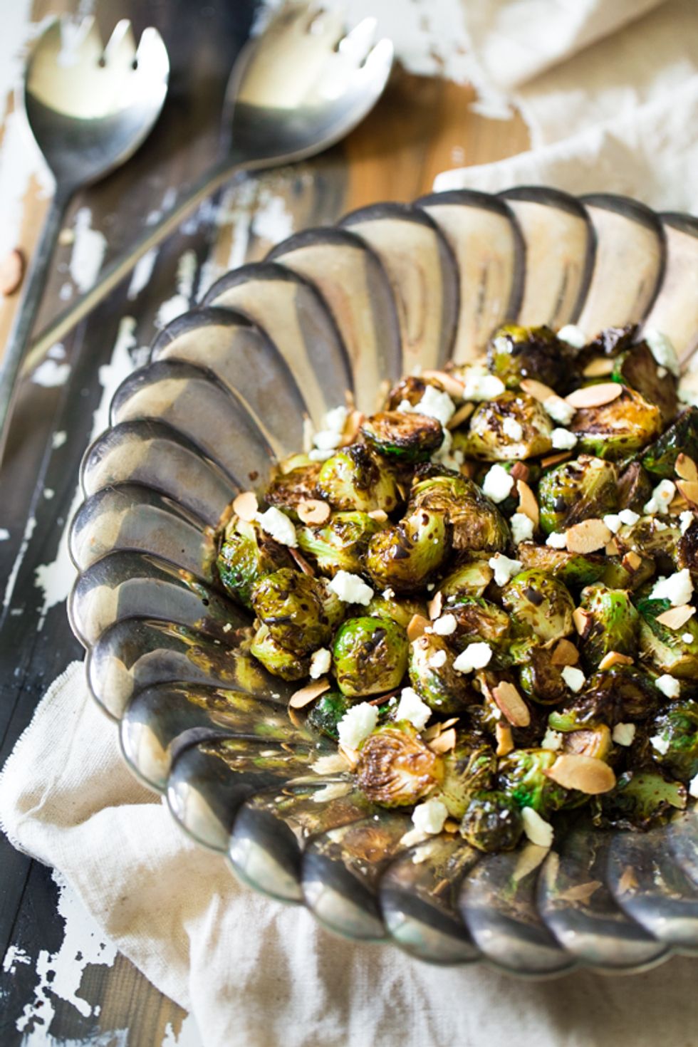 Balsamic Roasted Brussels Sprouts with Goat Cheese and Almonds