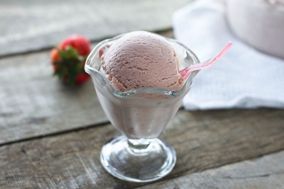 Smooth, creamy fresh strawberry ice cream.