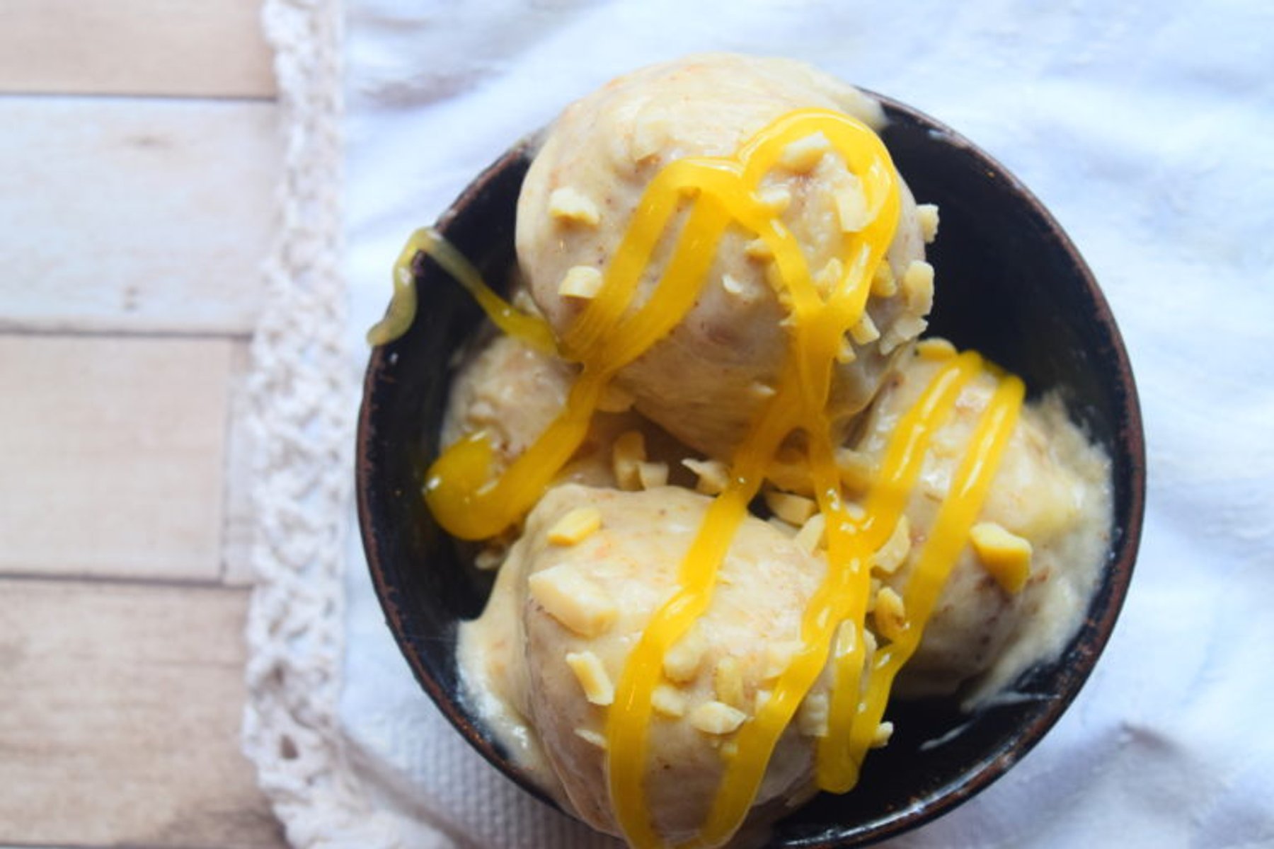 If you haven’t tried making banana ice cream (or nana nice-cream as it’s sometimes called) then you need to give it a go. It’s super delicious and really easy to make. All you need to do is freeze chopped up bananas, then blend them – We absolutely love it. Be sure to use really ripe bananas. They should be quite soft and really sweet, it’s such a great way of using up over ripe bananas too so they don’t go to waste. We’ve added a couple of ingredients to this version and we’re not disappointed