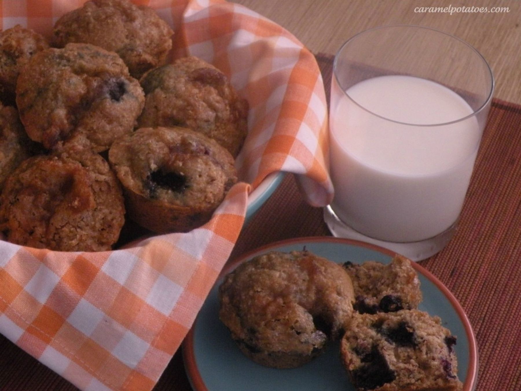 Cream together the butter and sugars; add eggs, then milk, bananas, and dry ingredients. By hand fold in blueberries (don’t stir too much, just mix them in). Spoon batter into well-greased (or sprayed) muffin tins. Sprinkle each muffin with brown sugar (go ahead – be generous, the brown sugar is going to melt and make the most yummy topping).