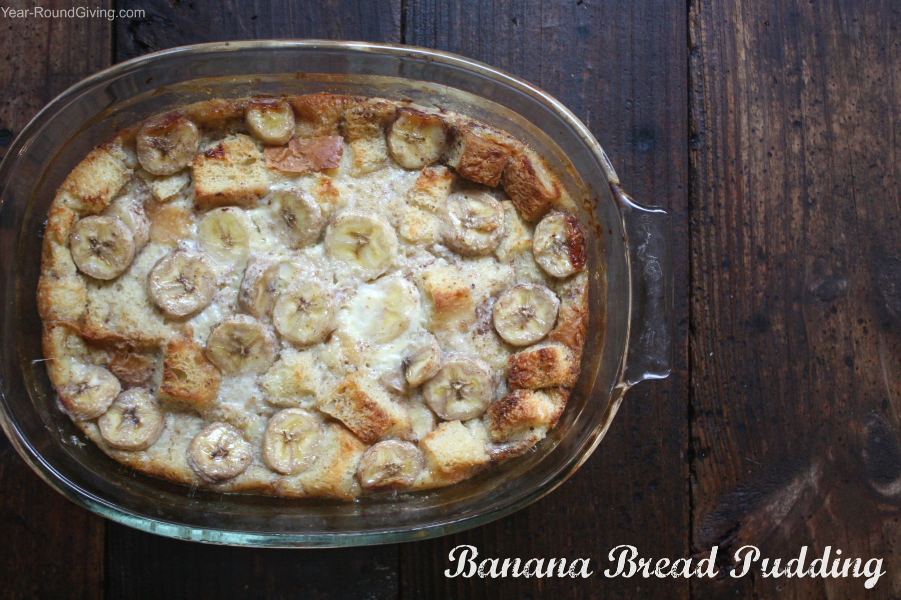 It is served warm with a warmed vanilla sauce to drizzle over it. It is so good I ate it cold for breakfast and it was still amazing. If you love banana bread and bread pudding you will love this recipe.