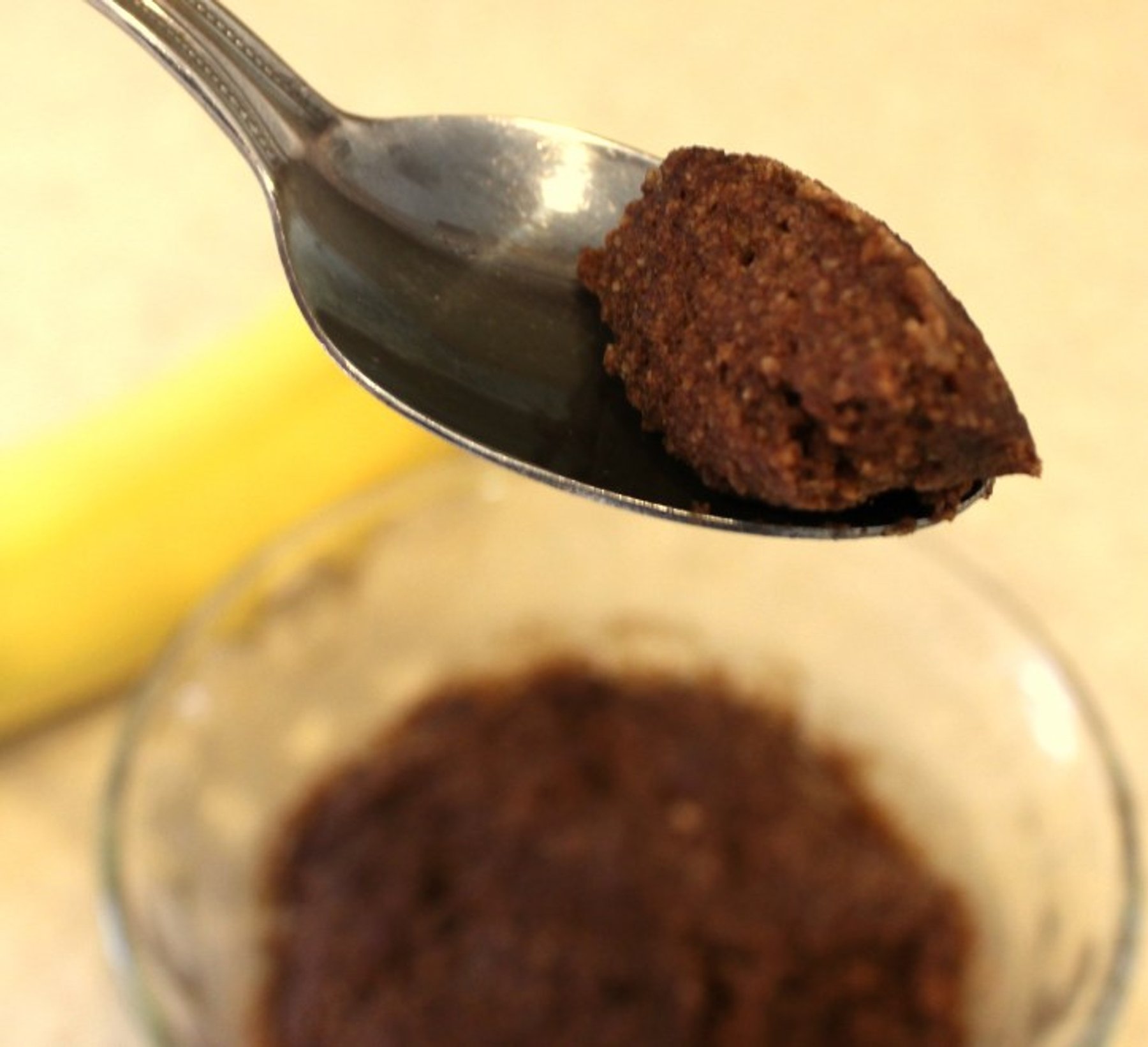 This recipe calls for a banana, almond flour, cocoa and honey.