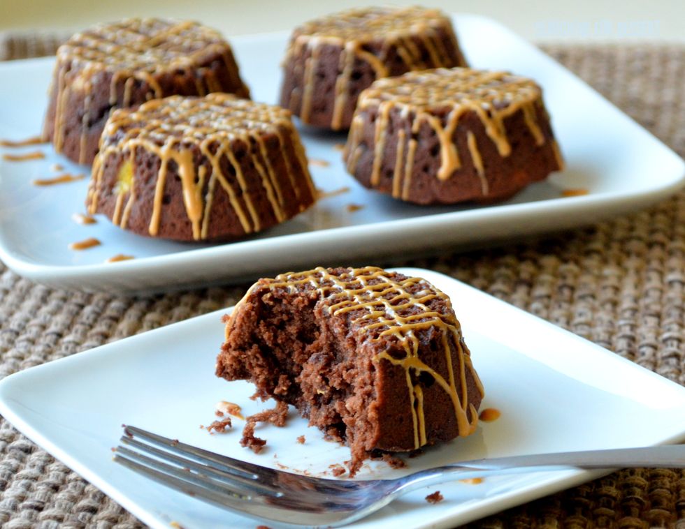 Chocolate brownies studded with bits of banana and drizzled with peanut butter!