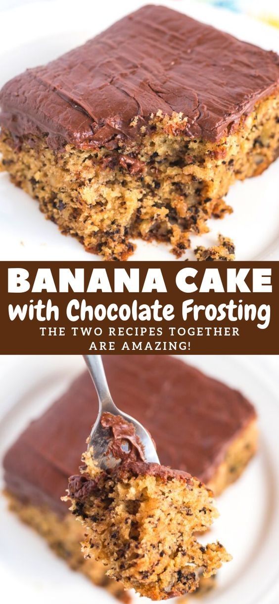 This delicious homemade cake is soft, moist and tender. Banana Cake with Chocolate Frosting also has a homemade frosting that is smooth and luscious. The two recipes combined are irresistible together. The first time I made this cake I made it for a family dinner as dessert. As my brothers, their wives and my mother sat eating the cake, I asked them if they liked it. They wouldn't stop eating the cake so they replied by looking up and nodding their heads yes with full mouths. I can't blame them, this is one amazing homemade cake. The flavors of banana and chocolate are one of my favorite flavor combinations.