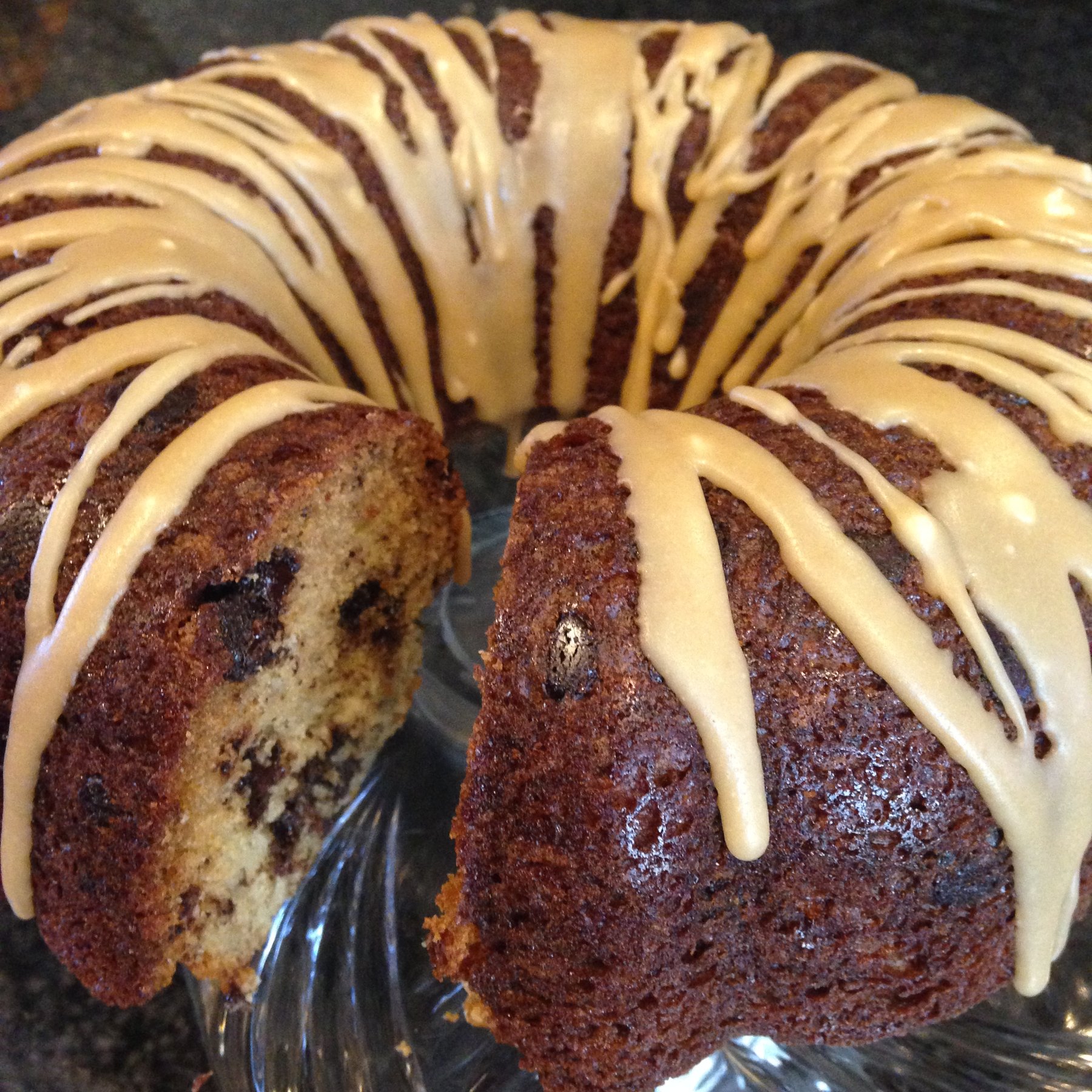 Banana Chocolate Chip Cake with Caramel Icing