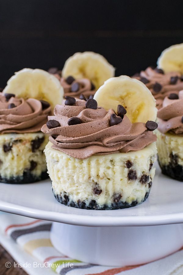 A swirl of homemade chocolate whipped cream and fresh banana slices make these little Banana Chocolate Chip Cheesecakes a sweet way to celebrate any life event.
