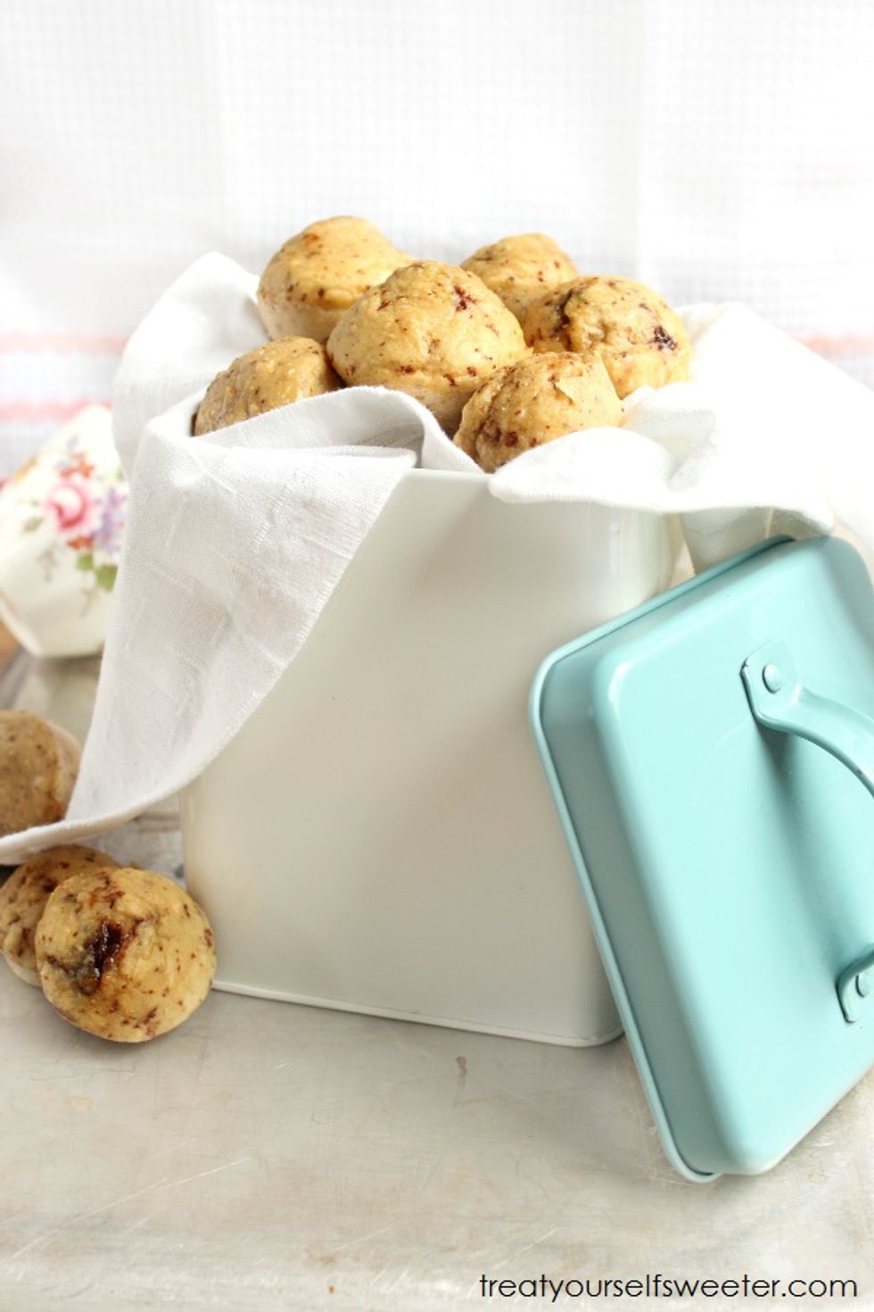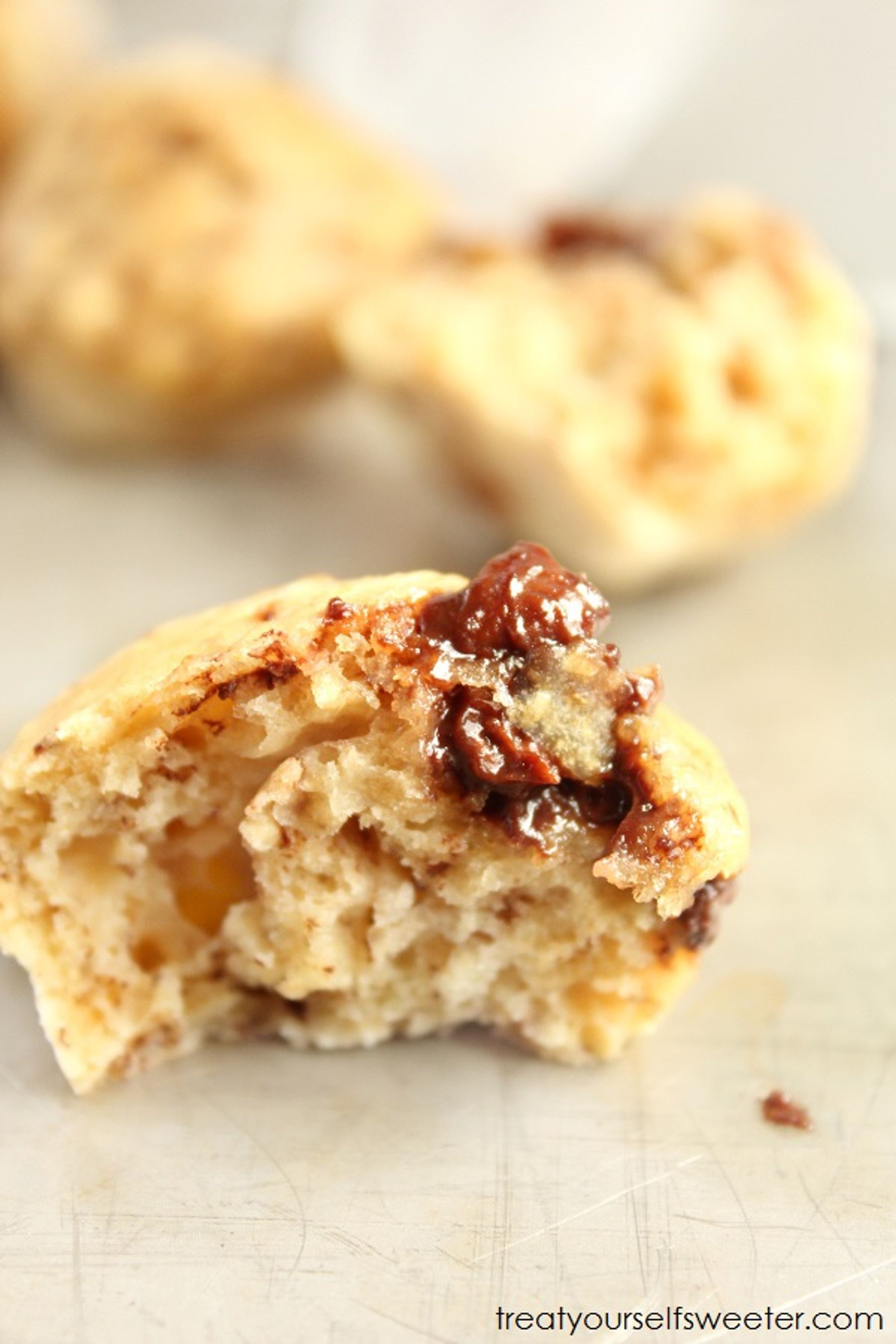 Soft, fluffy banana mini muffins with flakes of dark chocolate and a gooey, melted chocolate center when you eat them warm from the oven. A perfect afternoon snack...