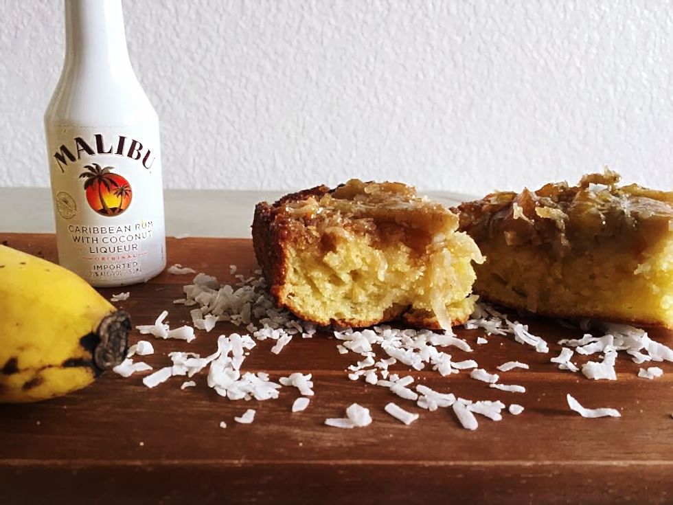 Caramelized bananas pair beautifully with the warm spiced and the coconut rum! The kitchen bathes with the aromas of the baked bananas… Try to refuse a piece of cake like this!