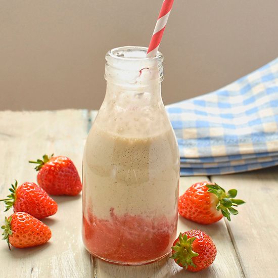 For an even faster version you can throw the strawberries into the blender with the other ingredients if you prefer, but I prefer the contrasting colours and textures that are produced by preparing the strawberries separately.