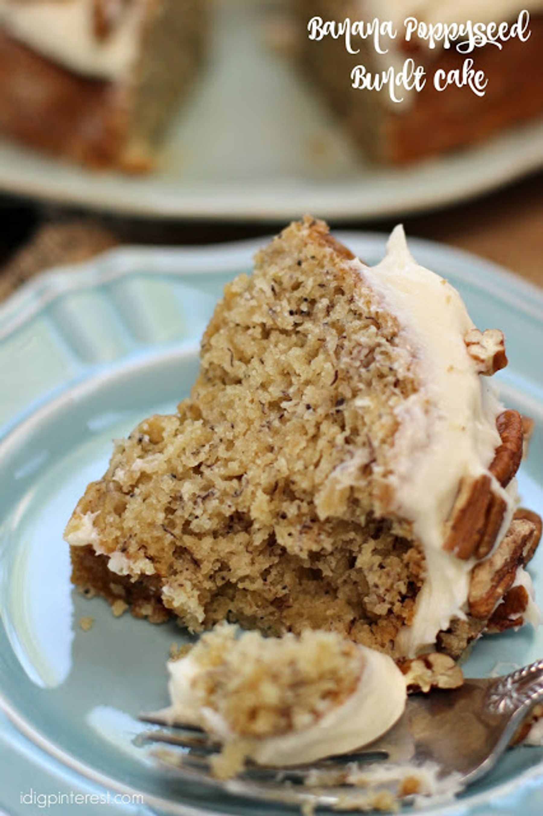 If you are a banana bread lover, you need to try this delicious cake-ified version with poppy seeds, decadent cream cheese frosting, and chopped pecans!