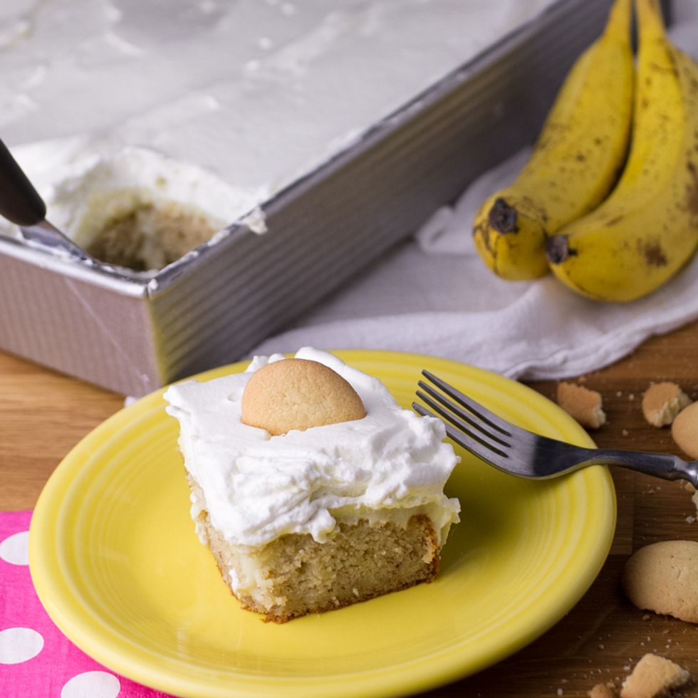 Banana pudding cake is a from-scratch poke cake with all the ingredients of a classic banana pudding!