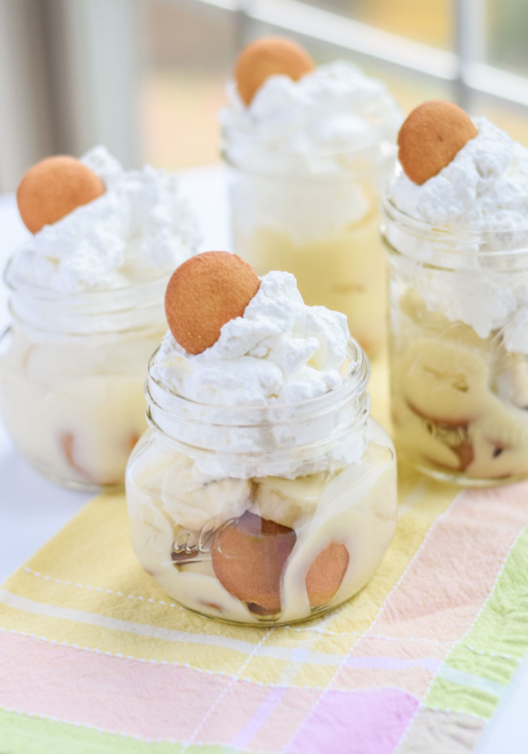 Down here in the south, we love us some banana pudding and anything goes in a Mason jar. And now that football season is upon us, these would be perfect for your tailgating fun as well!