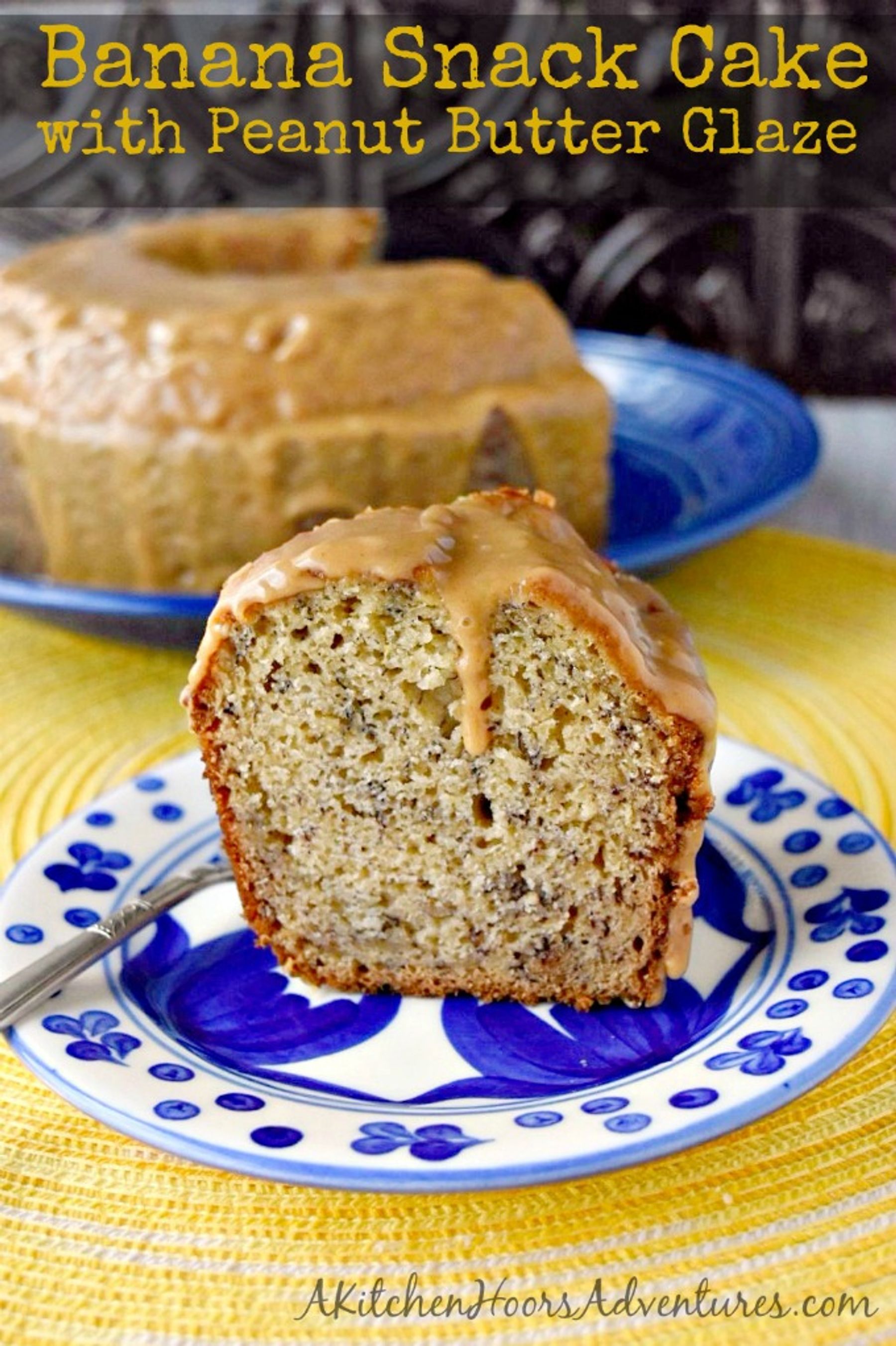 Banana Snack Cake with Peanut Butter Glaze.