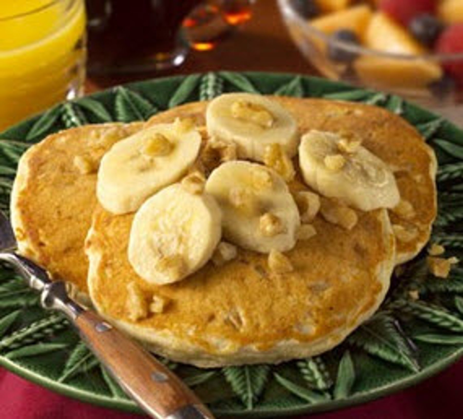 Light and fluffy pancakes made with ripe bananas and crunchy walnuts for a good-for-you start to your day