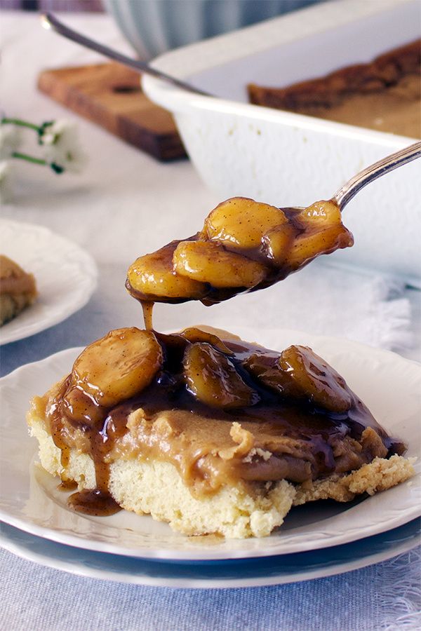 Bananas Foster Butter Cake. St. Louis Gooey Butter Cake topped with Bananas Foster Sauce, making an already good thing even better.