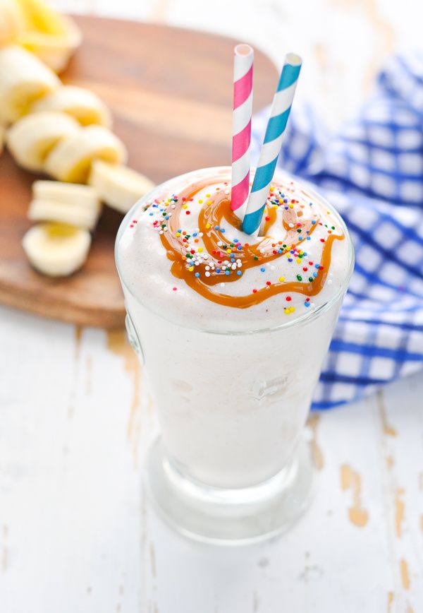 A low calorie Bananas Foster Protein Shake is a healthy breakfast to start the day! Bananas, rum extract, warm spices and caramel sauce give this smoothie all of the flavors of your favorite Southern dessert — minus the guilt!
