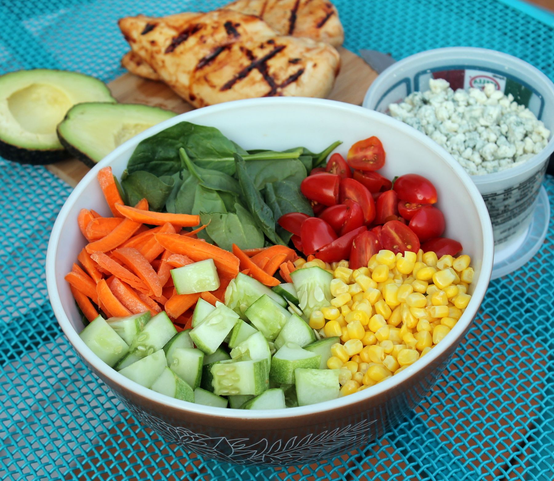 The perfect blend of vegetables, and blue cheese topped with barbecue chicken makes this salad a total hit for everyone.