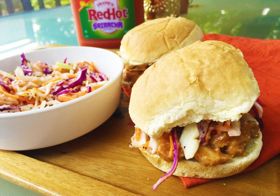 Barbecue Sriracha Pulled Pork Sliders with Apple Poppyseed Coleslaw