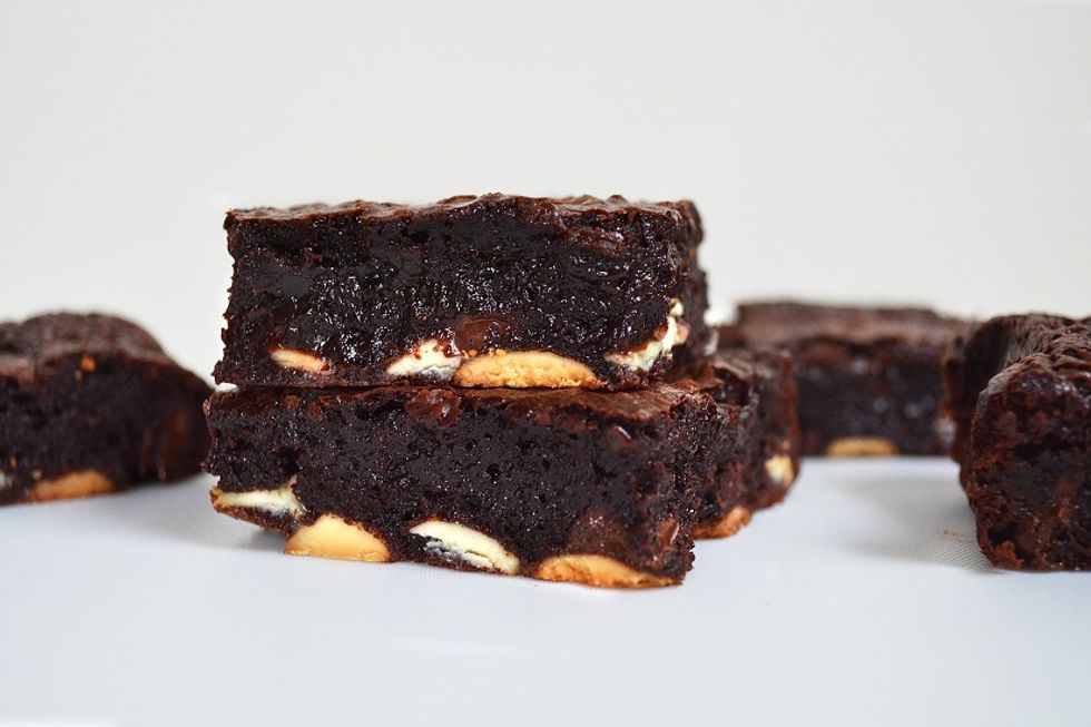 Preheat the oven to 180°C and line a 9x9 baking pan with baking paper. Sprinkle over the white chocolate buttons in an even layer over the base of the baking pan and set aside. Melt the butter, milk...