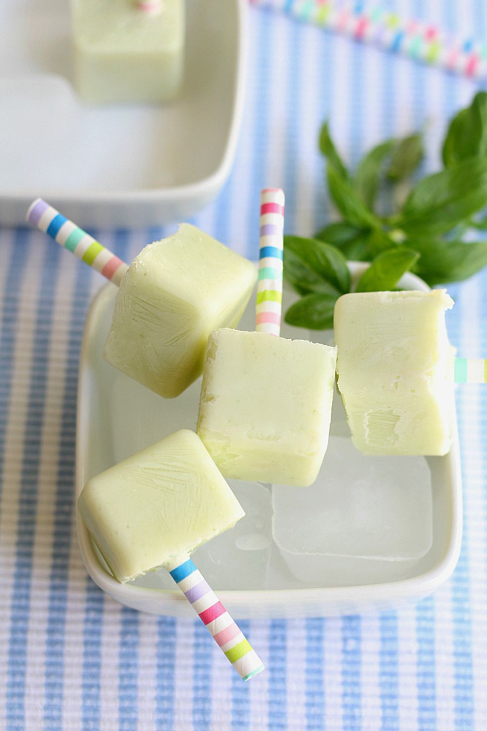 This creamy basil lemon popsicle recipe is made with Greek yogurt and full of protein! Sweet honey compliments the punch of lemony flavor that is then polished off with subtle hints of basil.