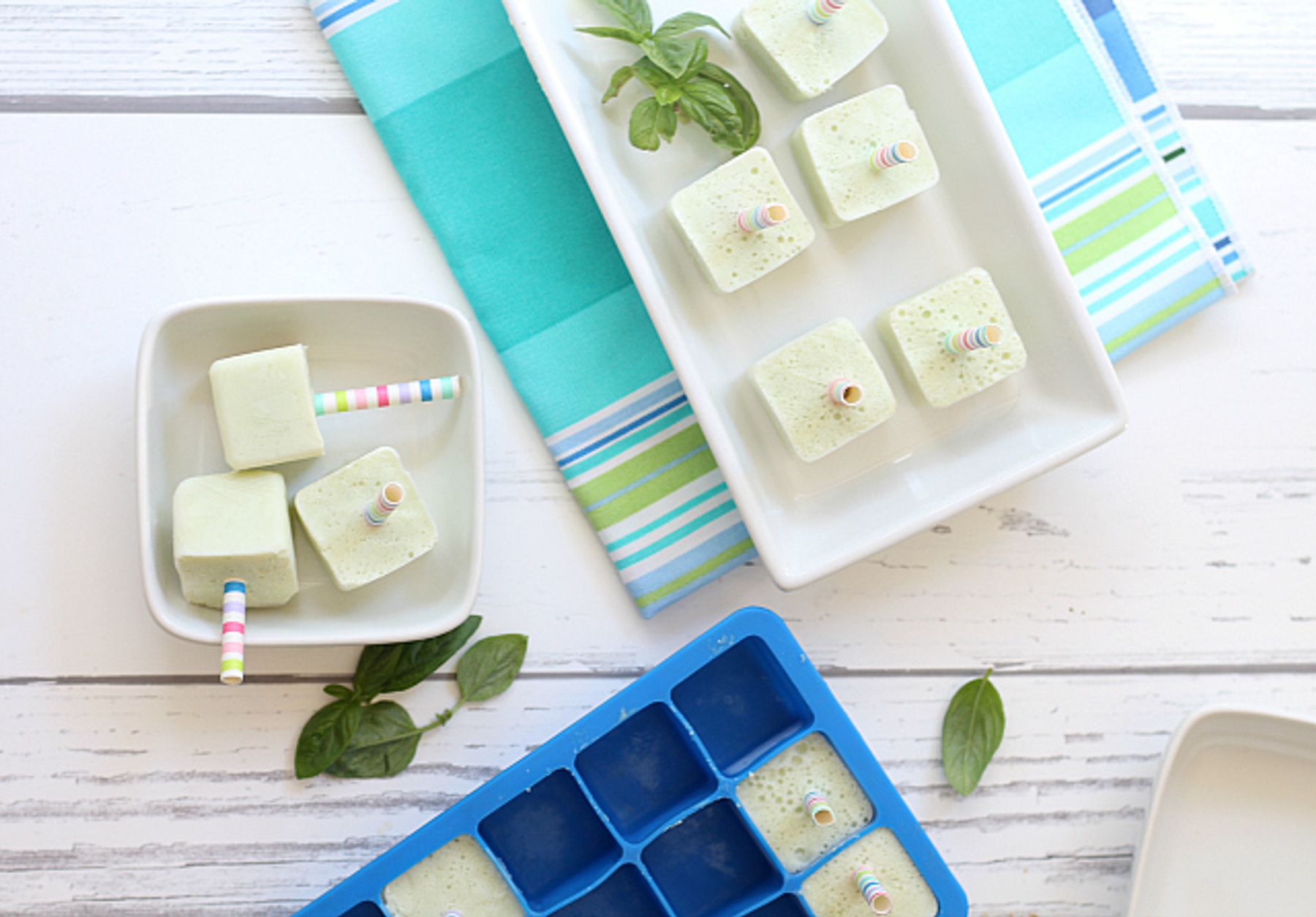 This creamy basil lemon popsicle recipe is made with Greek yogurt and full of protein! Sweet honey compliments the punch of lemony flavor that is then polished off with subtle hints of basil.