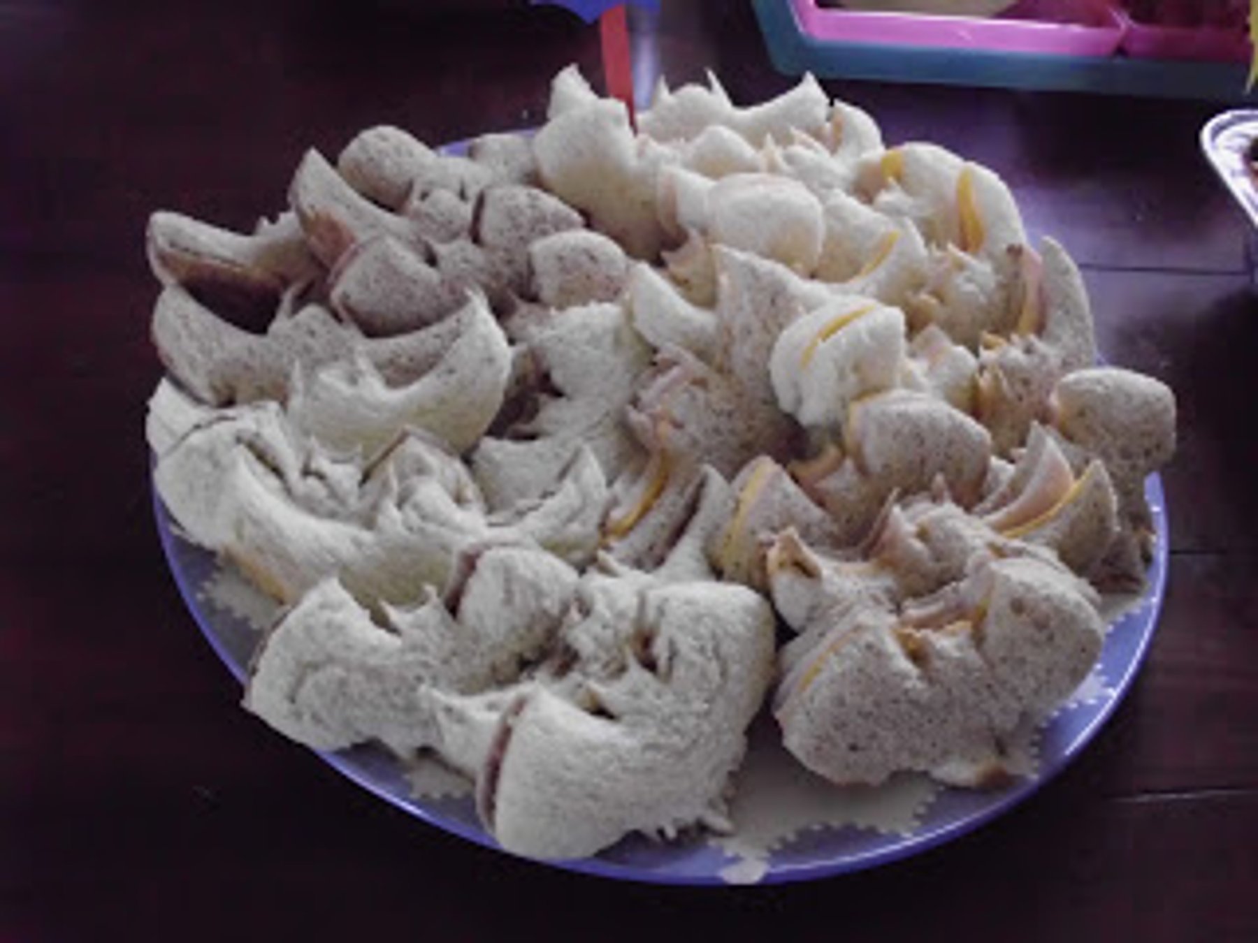 Spread slices of bread with mustard and layer with meats and cheese to make sandwiches. Use a bat-shaped cookie cutter to make cut-outs out of completed sandwiches. Serve immediately or cover...