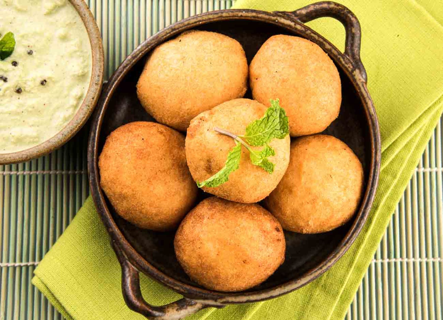 Batata vada is popular snack from the streets of Maharahtra. Batata translates into potato in English. Mashed masaledar potatoes coated in a thick besan batter and deep fried till golden. Served with a tangy chutney.