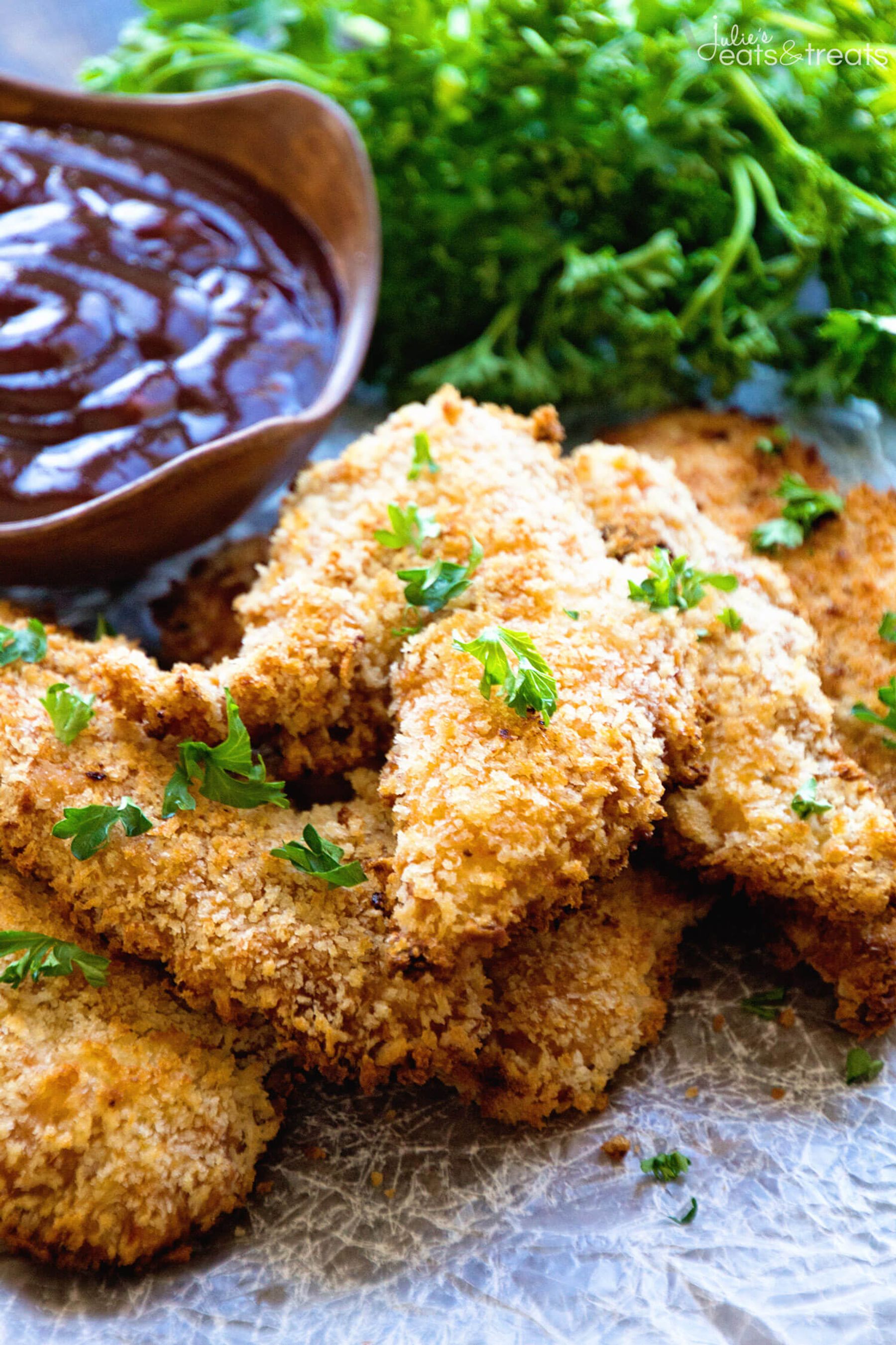 BBQ Baked Chicken Fingers Recipe ~ Homemade Chicken Fingers that are Marinated in BBQ Sauce then Dipped in Egg and Panko Crumbs for a Delicious Homemade Chicken Finger!