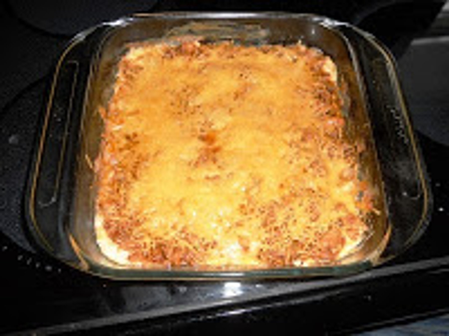 2. In an 8 x 8 baking dish mix the cream cheese, ranch dressing, sour cream, garlic powder, black pepper, 1 cup of the cheddar cheese, and 3 tablespoons of the BBQ...