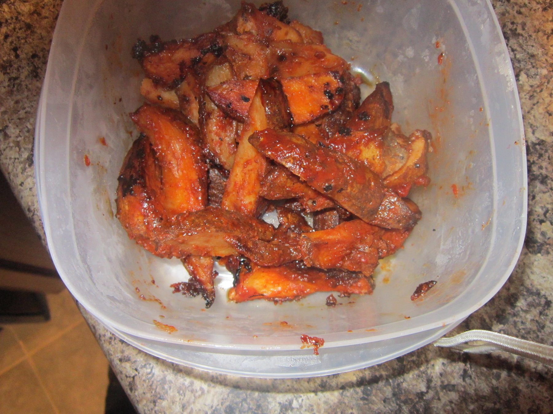 Take out and repeat Coat potatoes with sauce put back in oven for 20min