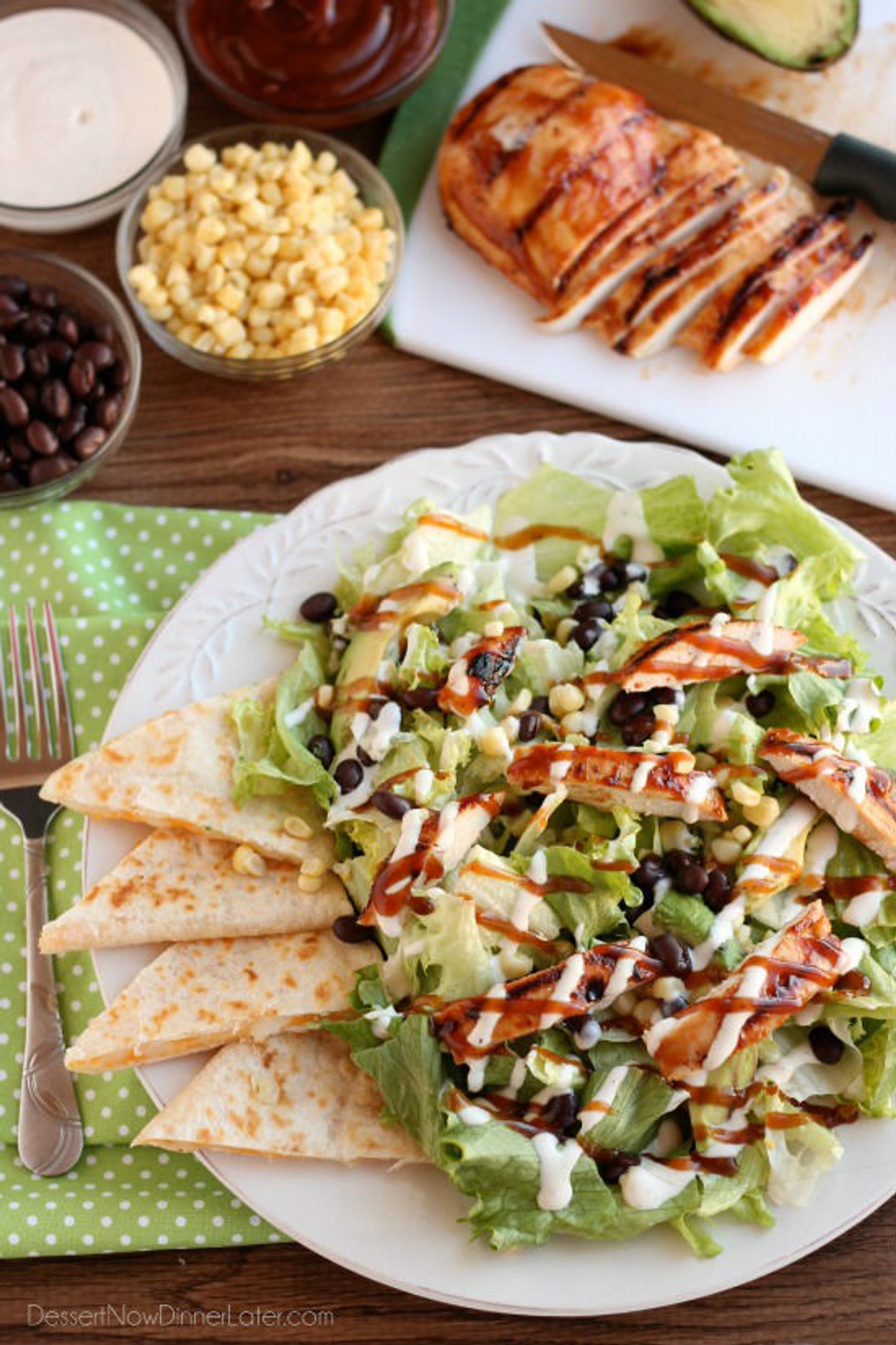 BBQ Ranch Chicken Salad – Mexican flavors meet good old American barbecue in this green salad served with ranch dressing.
