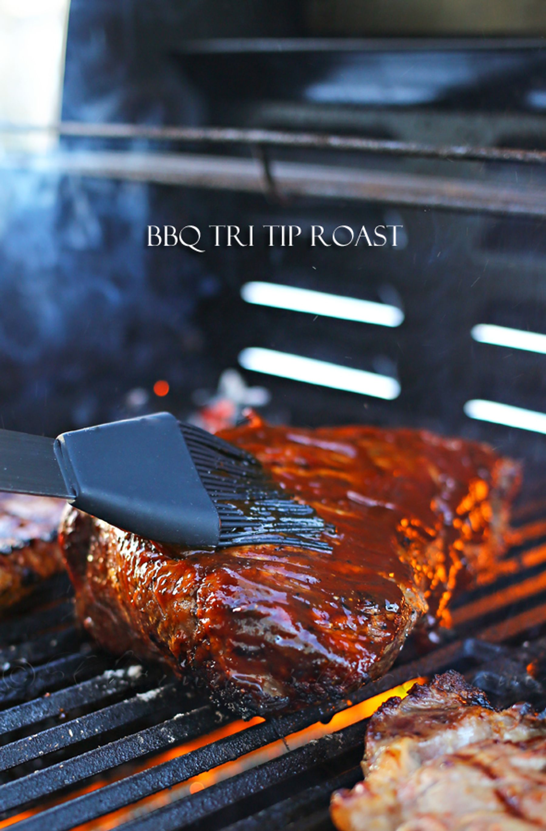 While the grill is heating -sprinkle your seasonings on your roast & rub them in