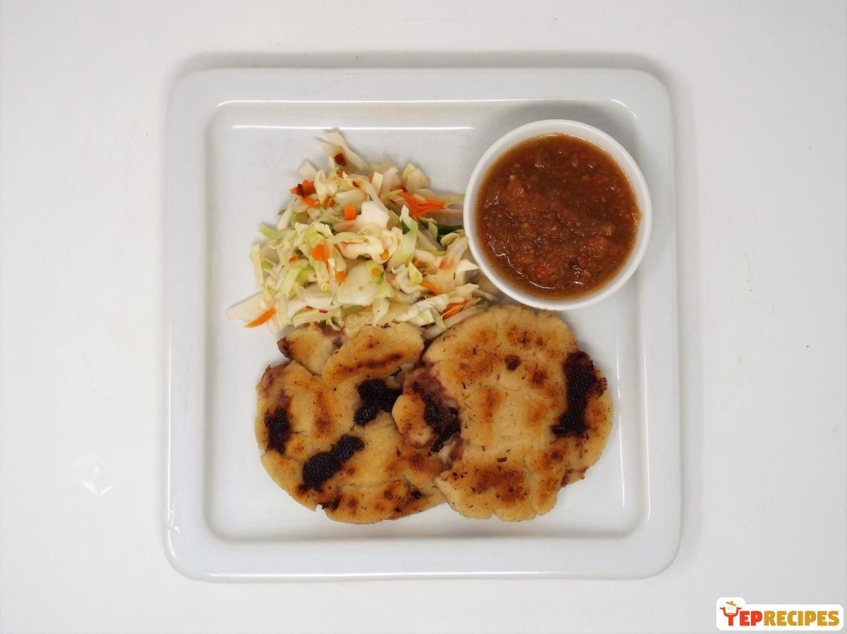 The national dish of El Salvador are a filled masa flatbread served with Curtido (Spicy Slaw) and Salsa Rojo. Pupusas can be filled with a variety of ingredients, this recipe uses cheese and beans.