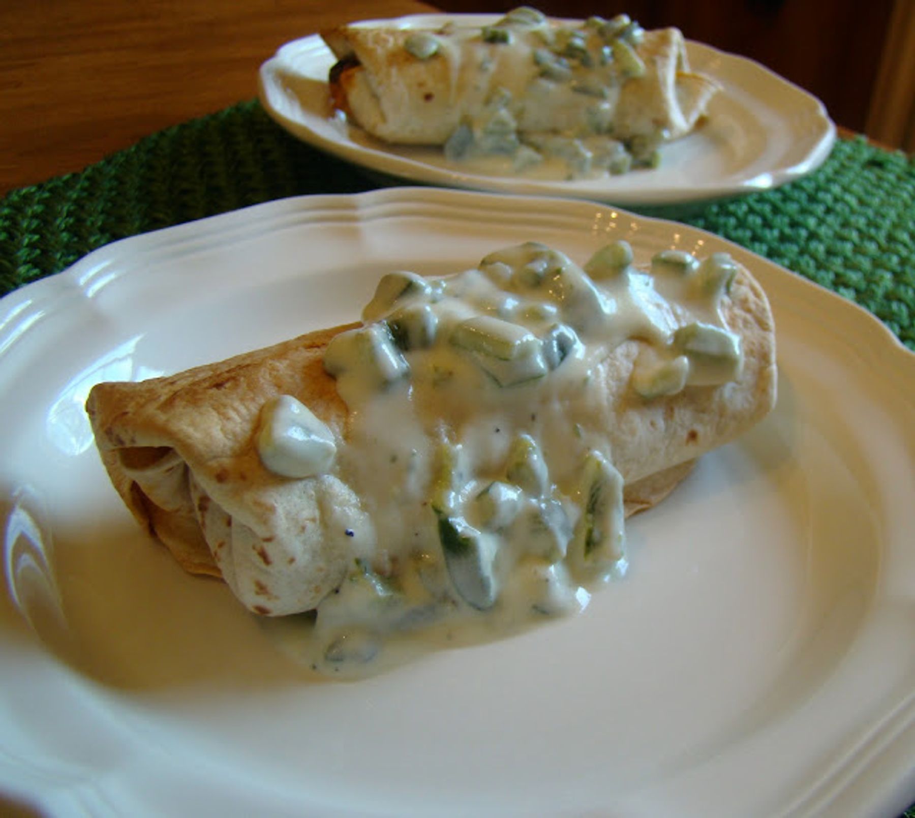 Beef and Bean Burritos with Sour Cream-Poblano Sauce
