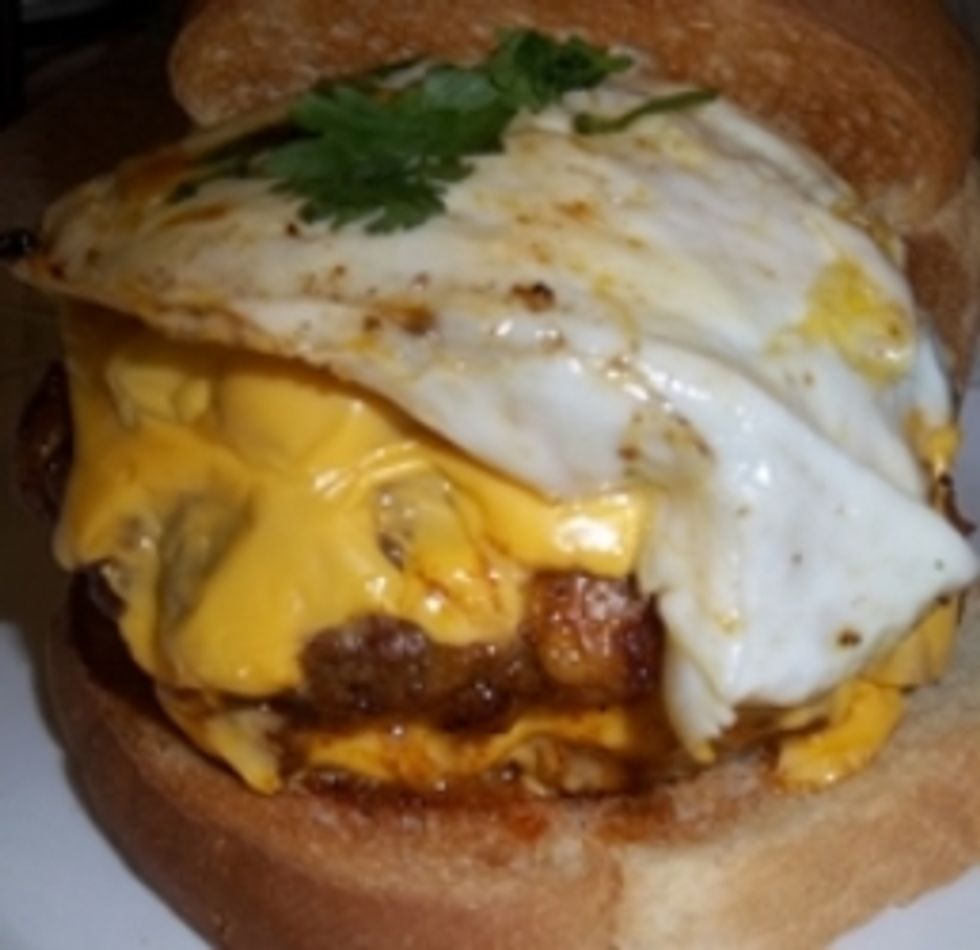 Beef Chicken Cheese Burger w/Fried Egg on Toast