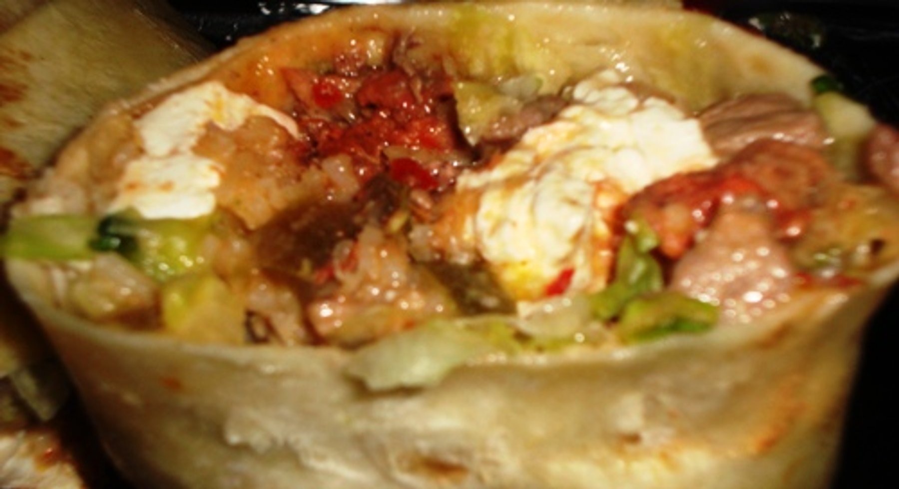 These Beef and Chorizo Burritos have peppers and onions along with potatoes cooked up in the mix Add some Salsa Verde and sour cream if you like and you're going to enjoy these.