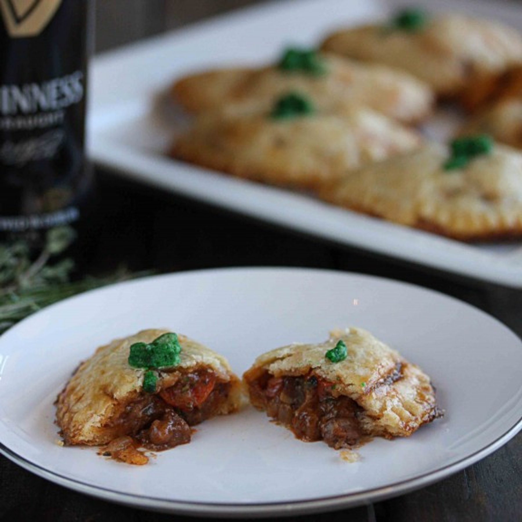 A hearty beer braised beef made into individual pies. So delicious and perfect for St. Patricks Day