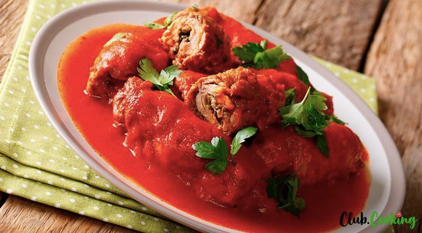 Beef Braciole is a traditional Italian beef roll stuffed with bread crumbs, cheese and herbs. It's a perfect fancy appetizer which can also be served as the main course over spaghetti and with the sauce it was baked in.