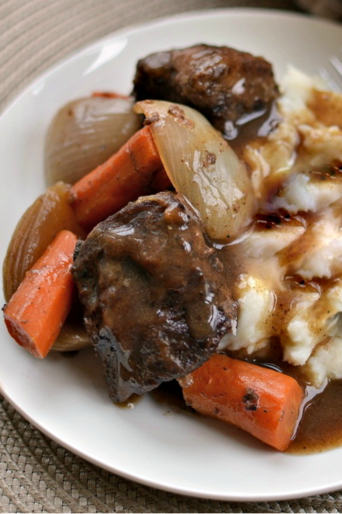 Beef Short Ribs Recipe slow cooks perfectly seasoned beef short ribs, carrots and onions in a broth that turns into an awesome gravy.