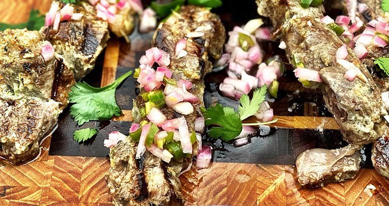 These lemongrass and coconut Wagyu beef skewers are marinated overnight and grilled to perfection. Served with a pickled red onion and serrano chili pepper relish, these skewers are extremely flavorful! This delicious dish works as both an appetizer or a main course. Try this recipe today!
