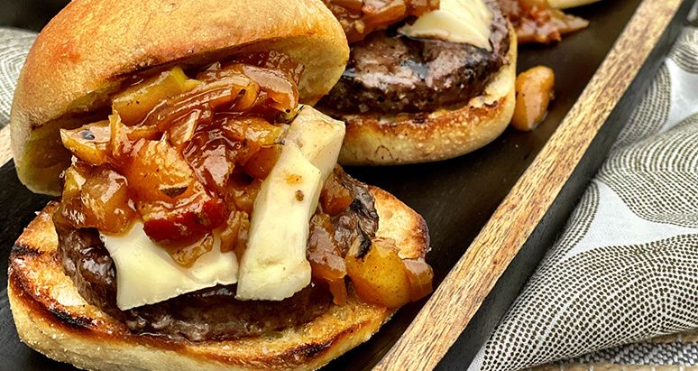 Beef Sliders with Onion & Pear Chutney & Brie Cheese