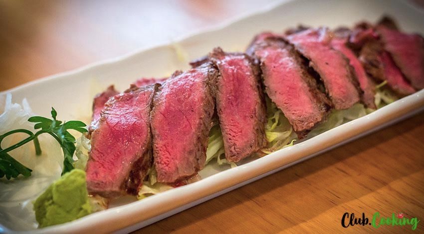 Looking like it walked straight out of a gourmet fashion magazine, this beef tataki aims to impress. Tender steak cut into transparent slices, garnished with crispy veggies and delicious marinade is bound to set up a perfect mood for a romantic dinner for two.