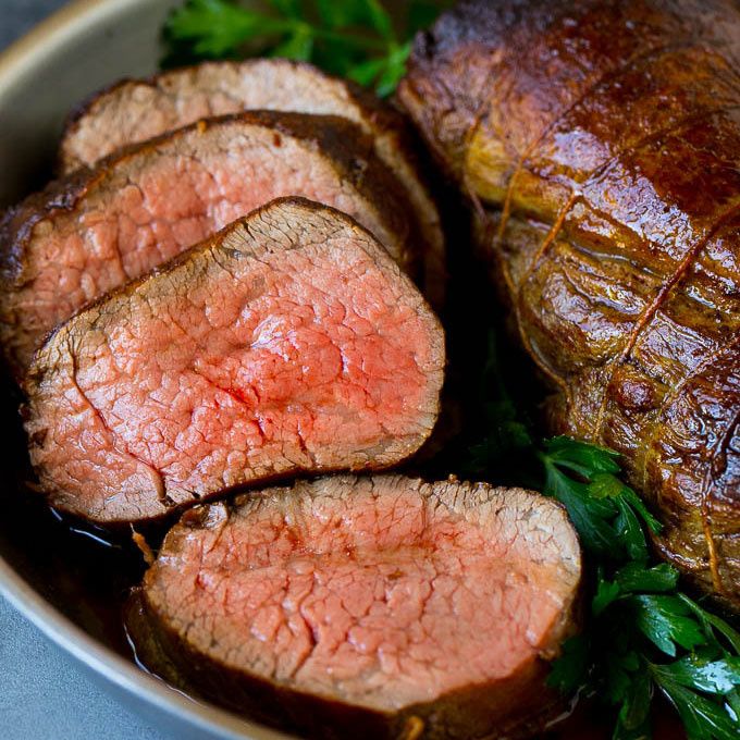This beef tenderloin is seared to golden brown perfection, then topped with flavorful garlic butter and roasted in the oven. An easy and elegant dinner option that's great for entertaining and for holiday meals.