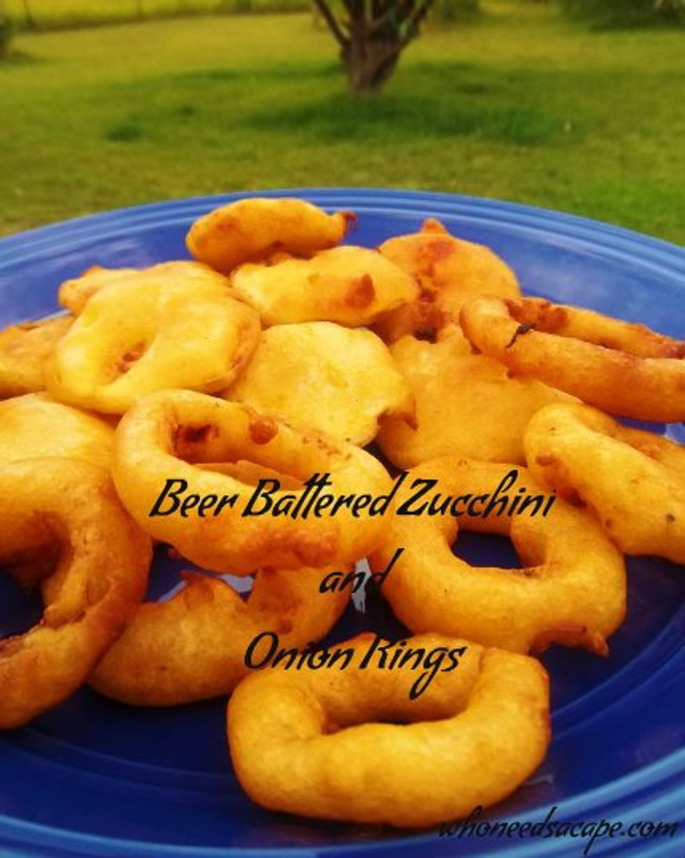 I love this Beer Batter. It can be used for any veggies you want to fry up or even fish or chicken. I made some zucchini and onion rings and they were DELISH. Even the little kids ate them up and asked for more. This is such a simple batter too, no fuss really. I spent more time slicing the zucchini and onions than on the batter or frying them up.
