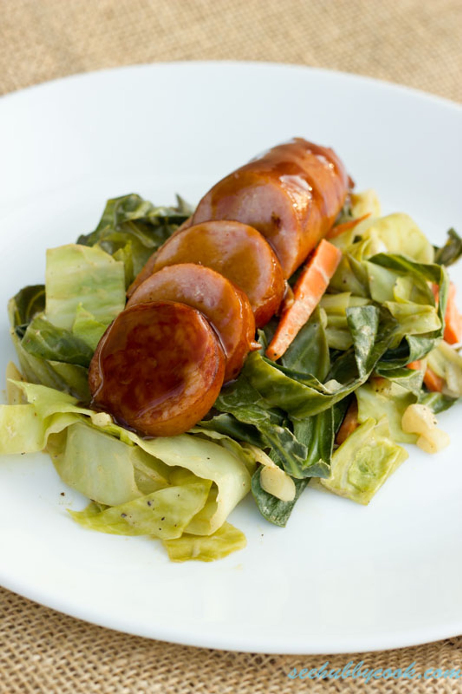 Beer Sausage with Mustard Slaw