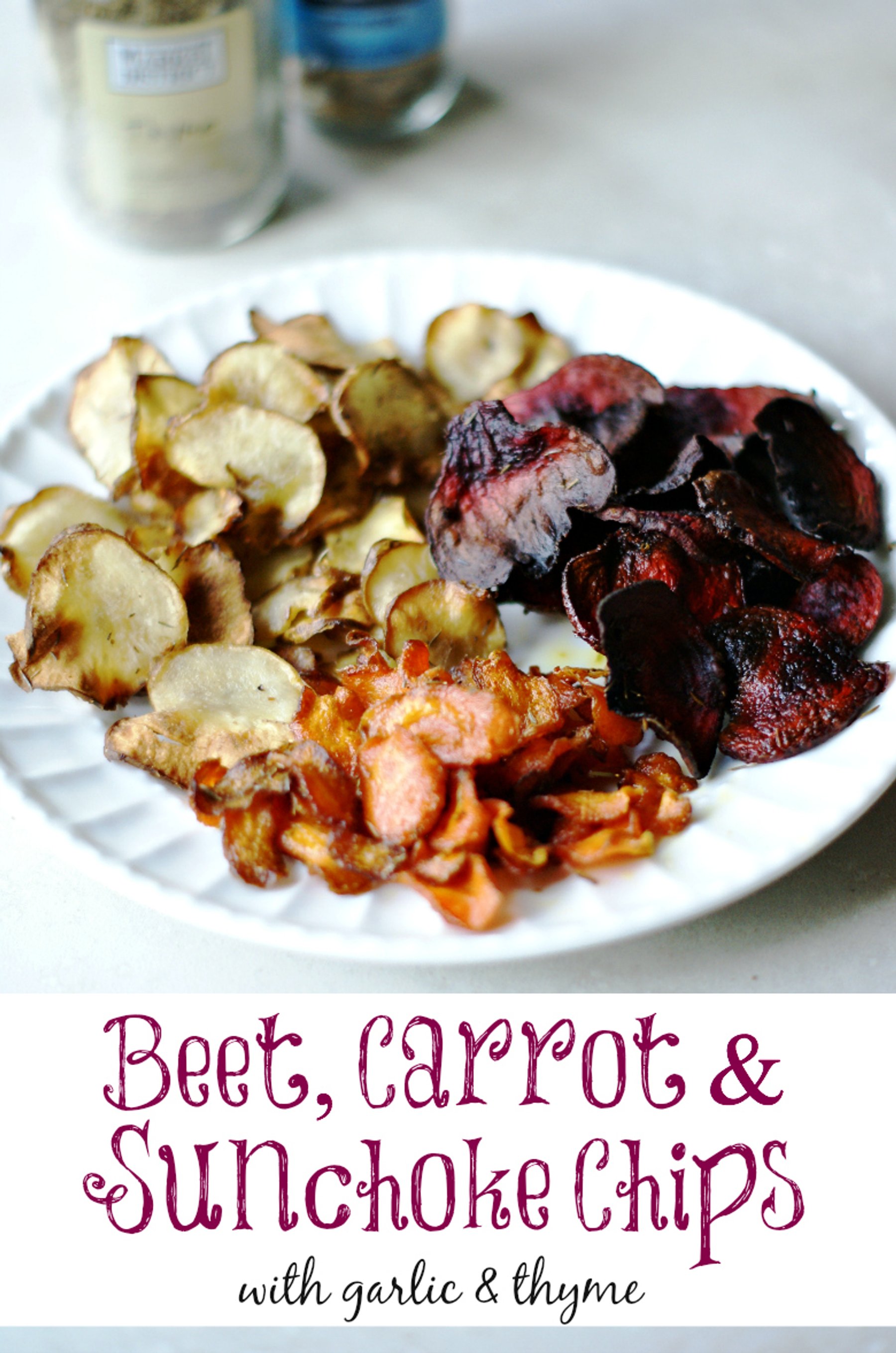 Beet Carrot & Sunchoke Chips with Garlic & Thyme