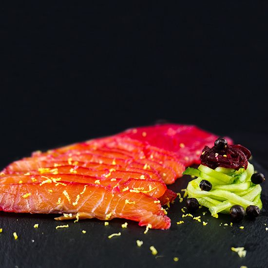 A really simple scandavian-style cured salmon with a modern gin and beetroot flavour twist.