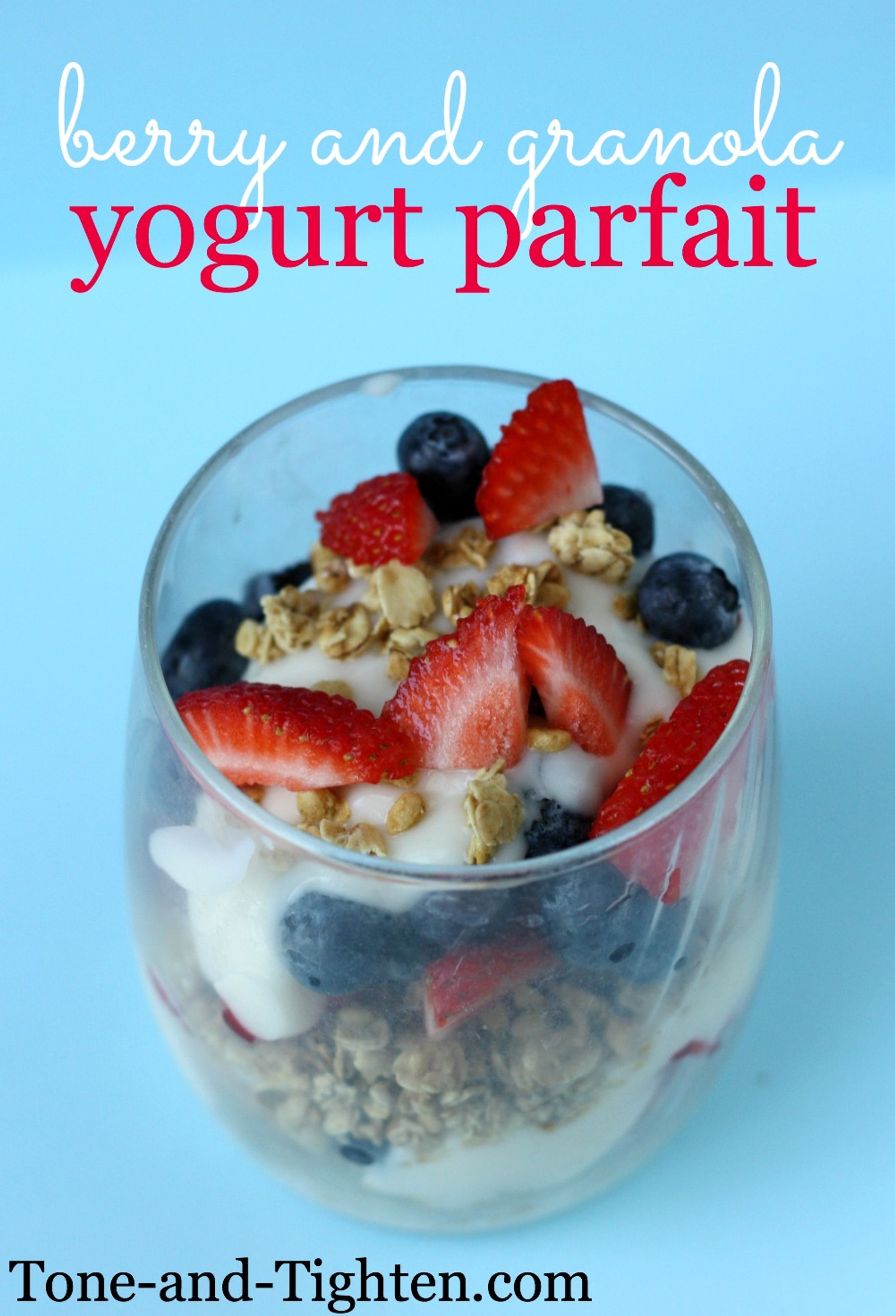 In a cup or bowl, layer half of the yogurt, half of the granola, half of the strawberries and half of the blueberries. Repeat layers and enjoy!