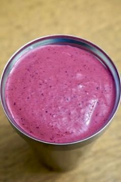 A smoothie with the perfect balance between the banana flavor and berry flavor.