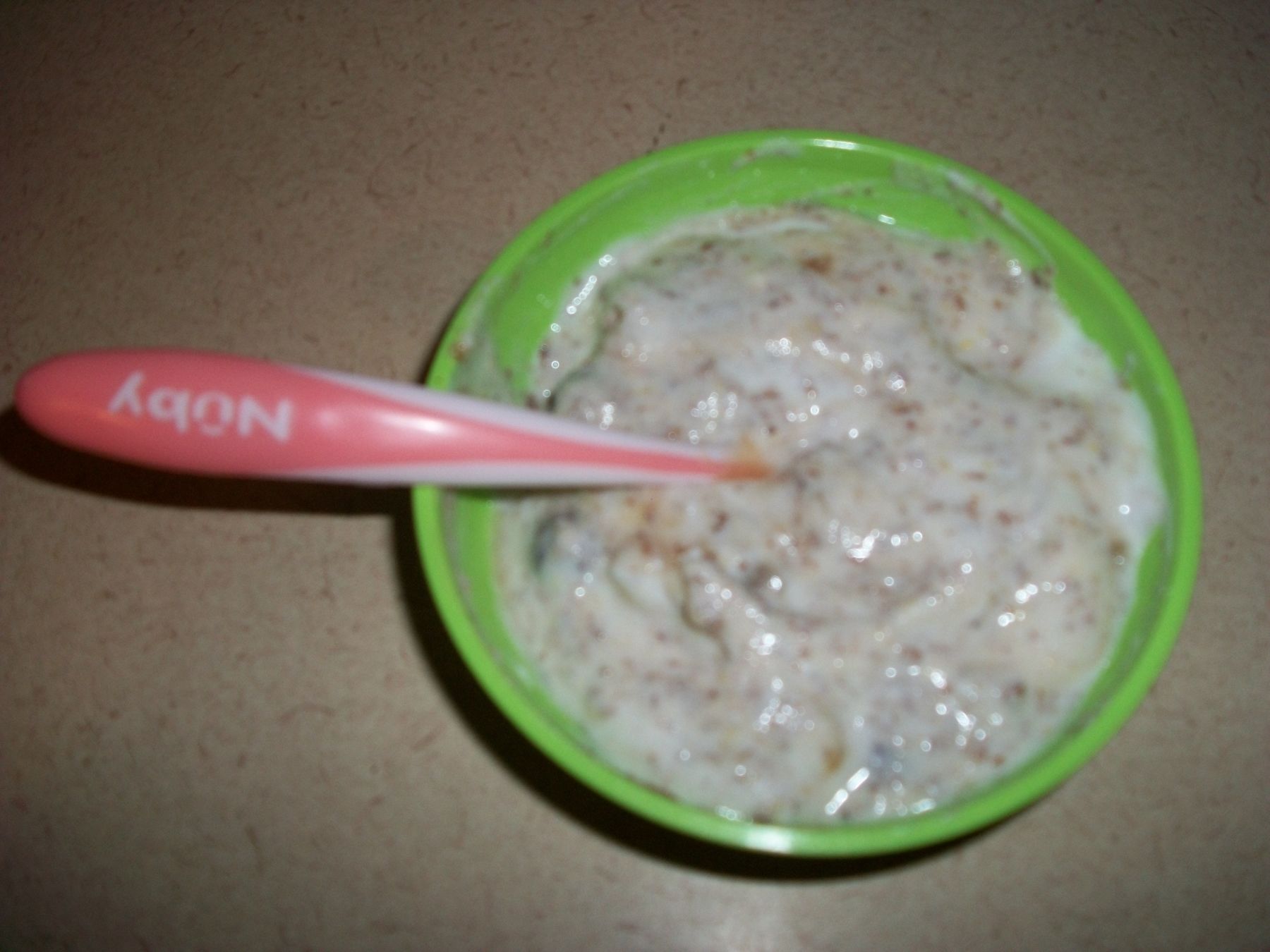 Our 13 month old loves this! We feel good giving him this as a healthy start to his day but I have given this to him as a snack a few times. The yogurt gives him probiotics, the flaxseed meal healthy fats, and the berries antioxidants.